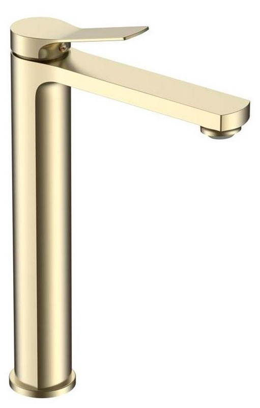 Смеситель для раковины, высокий, без донного клапана, цв.матовое золото