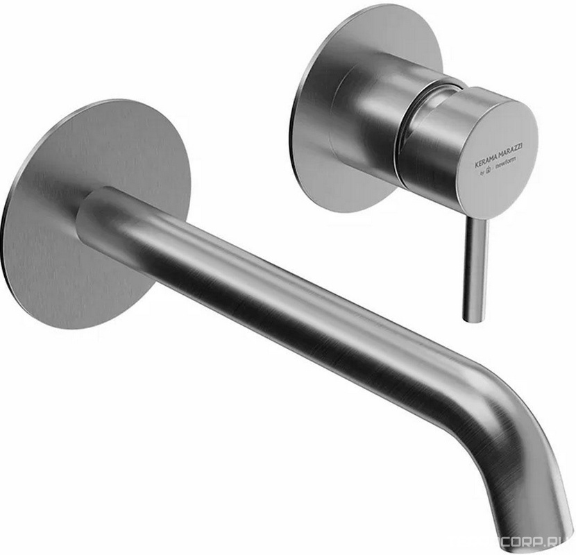 Смеситель для раковины, встраиваемый в стену, 1 ручк. гориз., излив 256мм, (цв. тертая сталь), 5mm ZZ