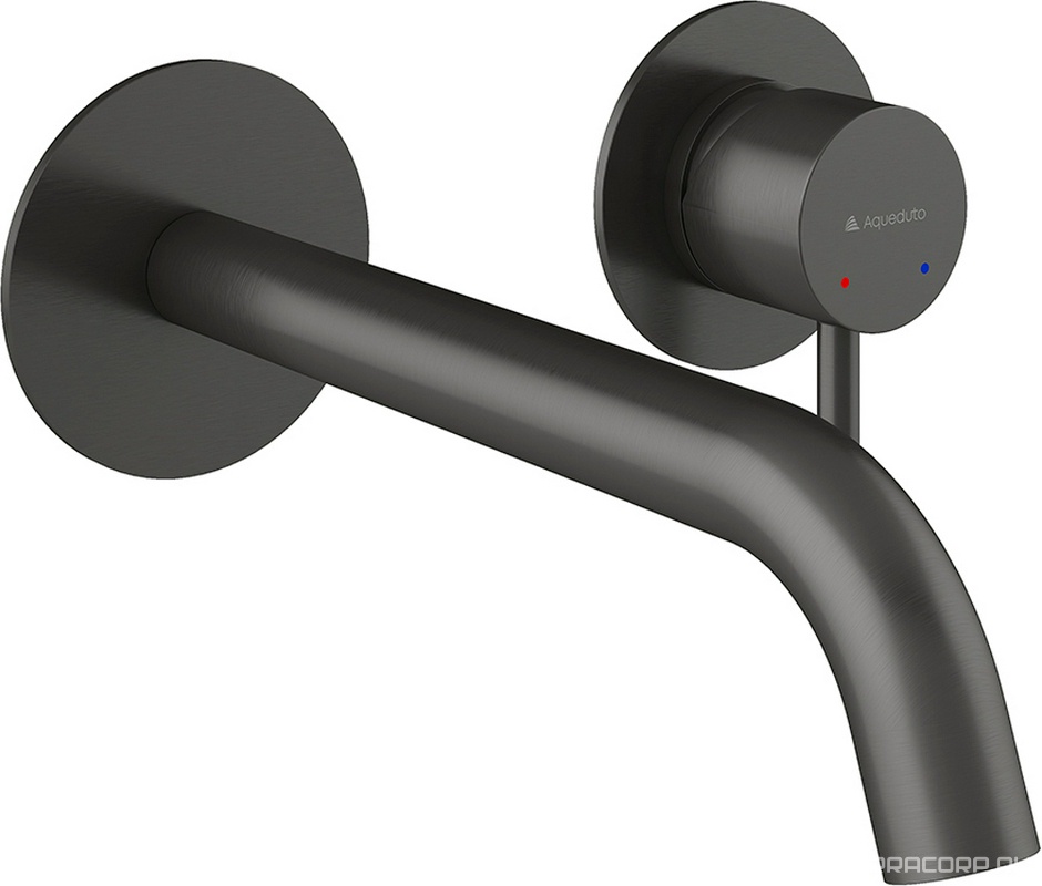 Смеситель для раковины, встраиваемый в стену, излив 195мм, встраив.часть в компл., (цв.графит браш.), Priority