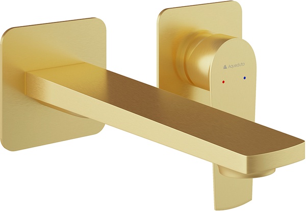 Смеситель для раковины, встраиваемый в стену, излив 190мм, встраив.часть в компл., (цв.шлифованное золото), LINHA