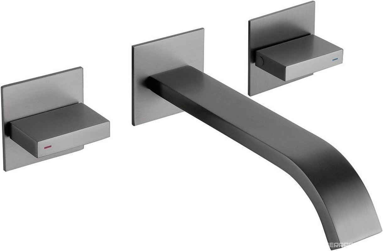 Смеситель для раковины, встраиваемый в стену, 2 ручк., излив 275мм, (цв. тертая сталь), 5mm ZZ