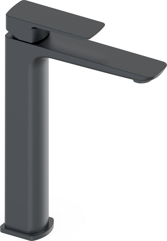 Смеситель для раковины, высокий, без донного клапана, цв.черый матовый
