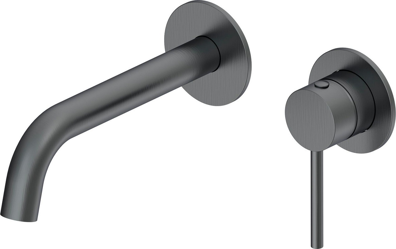 Смеситель для раковины, встраиваемый в стену, излив 195мм, встраив.часть в компл., (цв.графит браш.), Priority