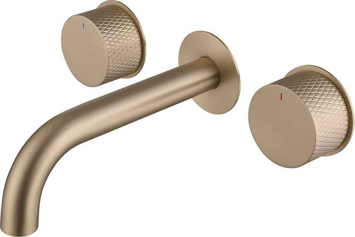 Смеситель встраиваемый в стену для раковины, на три отверстия, излив 180 мм, цв. матовое золото ZZ