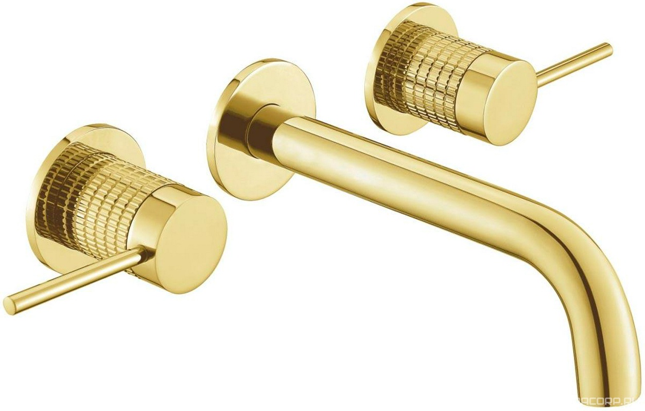 Смеситель встраиваемый в стену для раковины, на три отверстия, излив 180 мм, цв. матовое золото ZZ