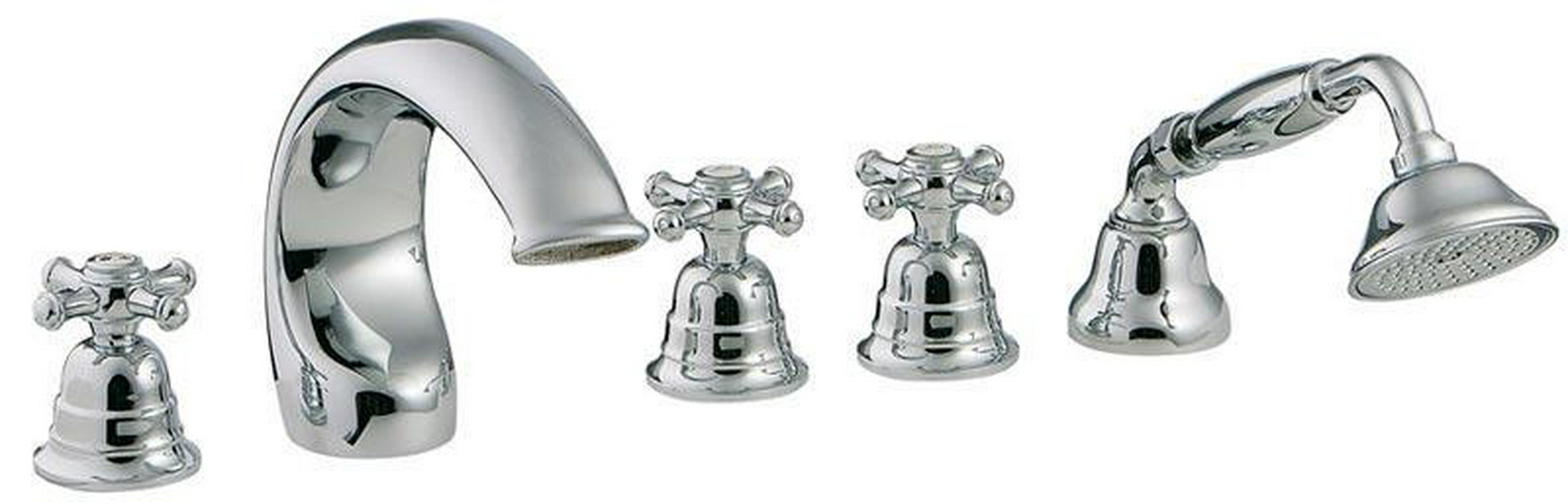 Смеситель для ванны, встраиваемый в борт ванны с душ. гарнитуром на 5 отв. (хром), Old italy ZZ