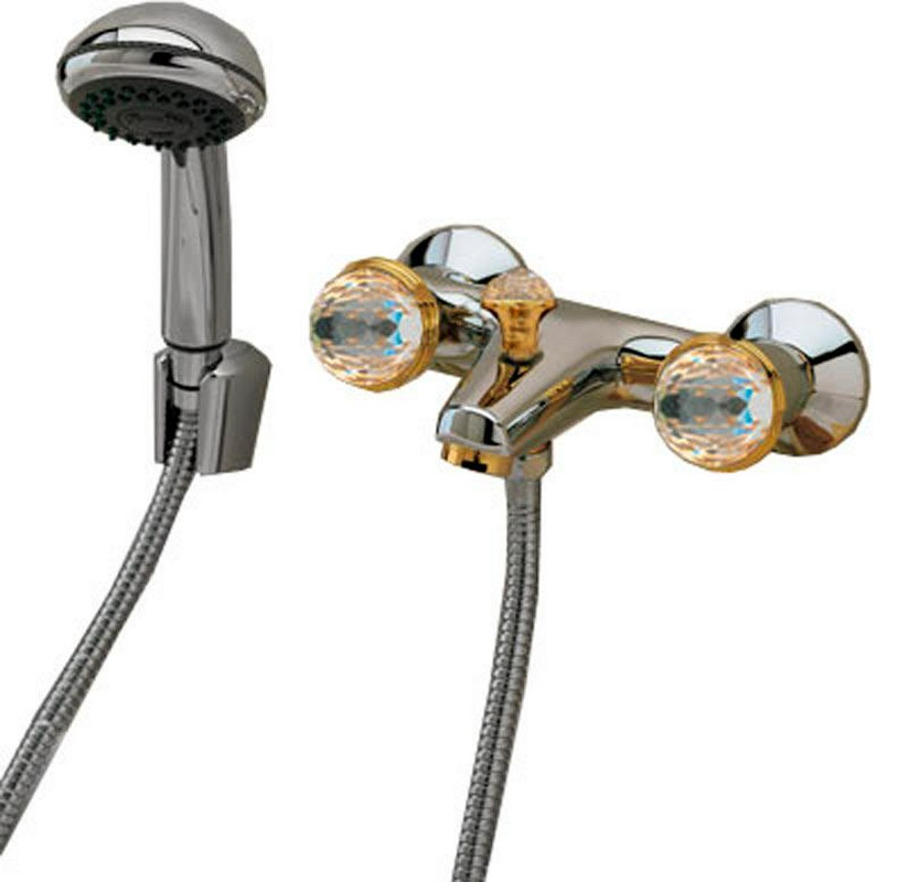 Смеситель для ванны, лейка, шланг, кронштейн в компл., (цв. хром/золото), Okay Swarovski XX