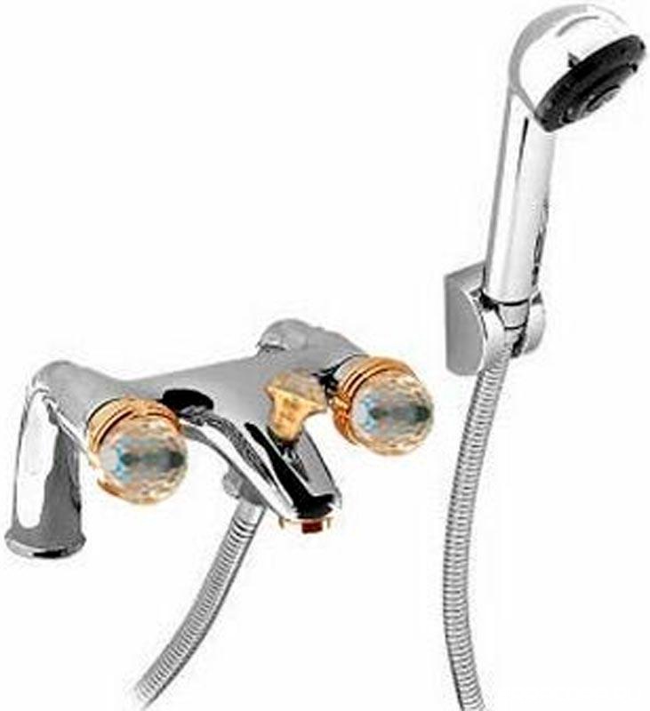 Смеситель для ванны, встраиваемый в борт на 2 отв., монтажные уголки, шланг, кронштейн, лейка д/д в компл., (цв. хром/золото), Okay Swarovski ZZ