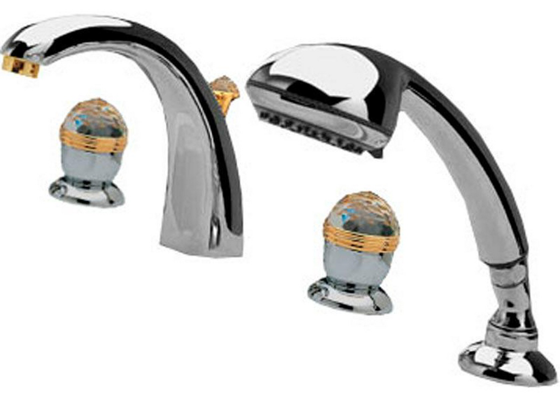 Смеситель для ванны, встраиваемый в борт на 4 отв., шланг, лейка д/д в компл., (цв. хром/золото), Okay Swarovski ZZ