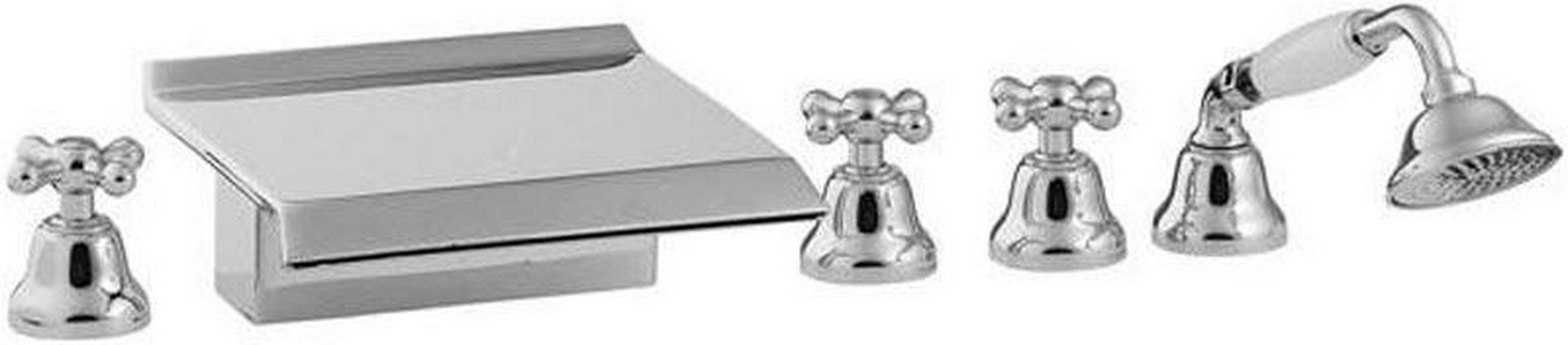 Смеситель для ванны на 5 отв., встраиваемый в борт ванны с душ.гарнитуром и доп.кронштейнами для лейки, (хром), Romantica ZZ