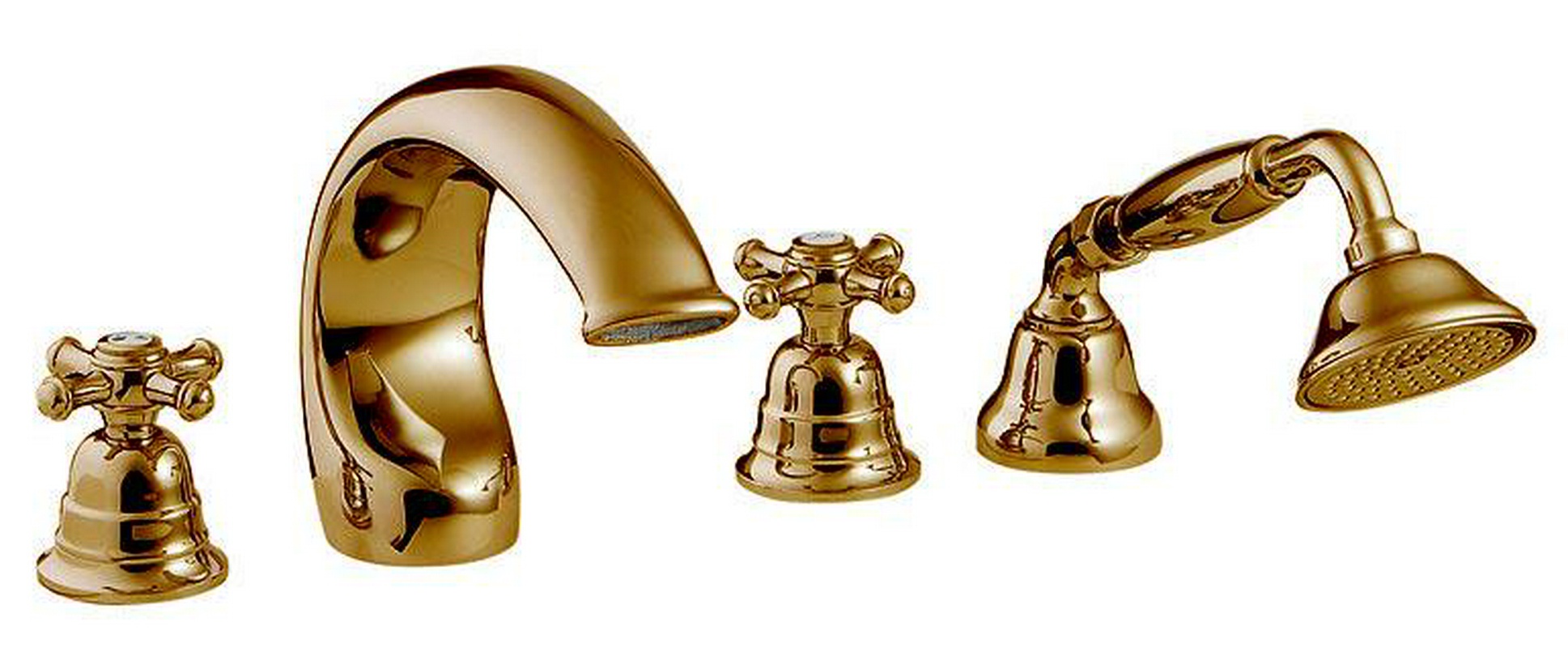 Смеситель для ванны, встраиваемый в борт ванны с душ. гарн., высокий излив на 4 отв. (бронза) Old italy ZZ