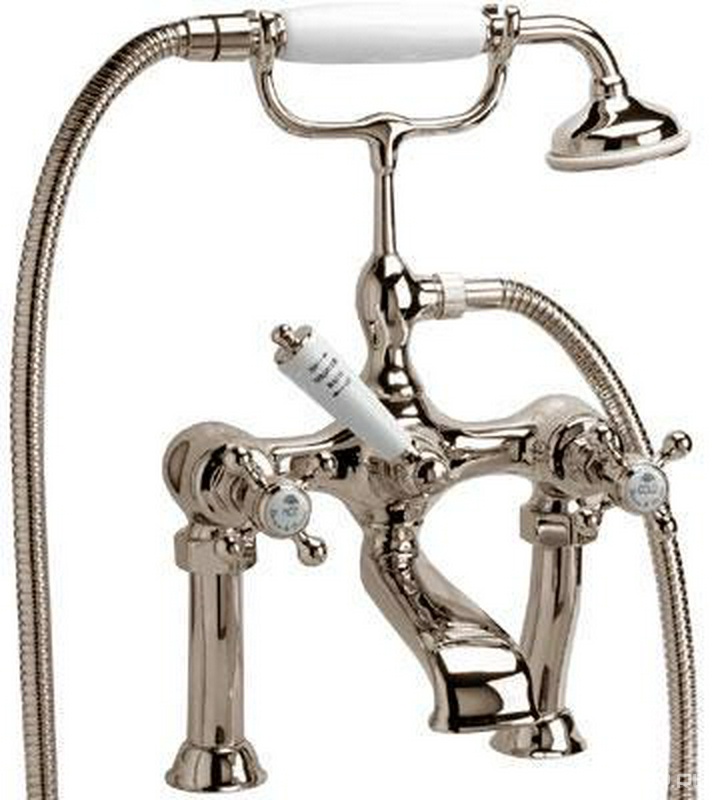 Смеситель для ванны,встр. в борт на 2 отв. с душевым гарнитуром, (цв. бронза, ручка цв. белый), Canterbury ZZ