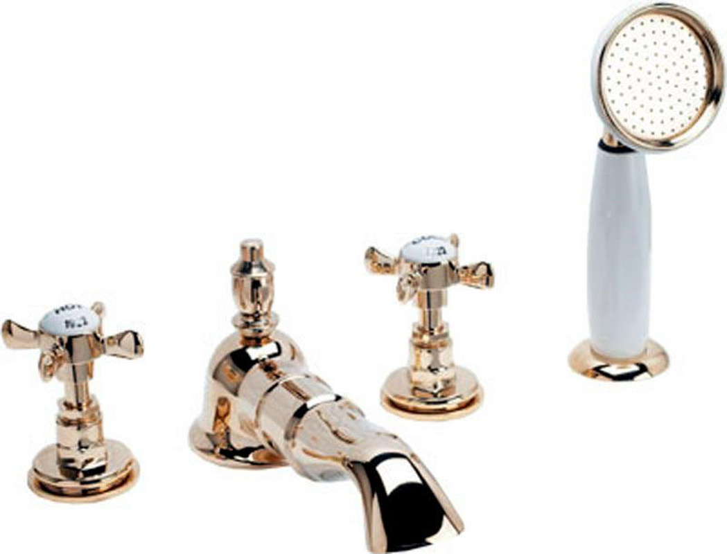 Смеситель для ванны,встр. в борт на 2 отв. с душевым гарнитуром, (цв. бронза, ручка цв. белый), Canterbury ZZ
