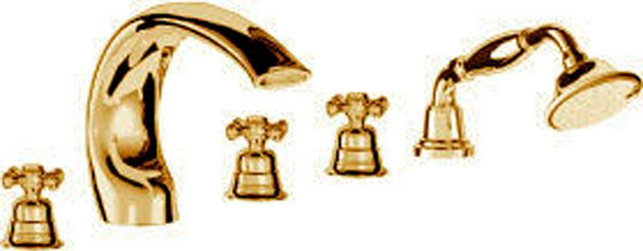 Смеситель для ванны, встраиваемый в борт ванны с душ. гарнитуром на 5 отв. (бронза), Old italy ZZ