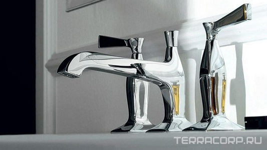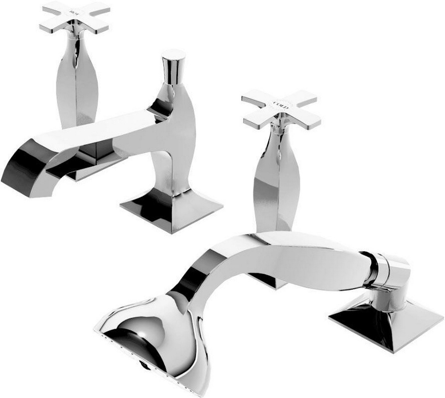 Смеситель для ванны, встраив. в борт, на 4 отв., ручки "Крест", с душевым гарнитуром, (цв.хром), Bellagio ZZ