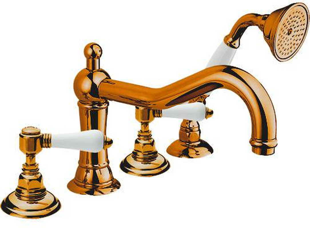 Смеситель для ванны, встраиваемый на 4 отв. (цв.бронза/ручки керамич.белые), Nicolazzi ZZ