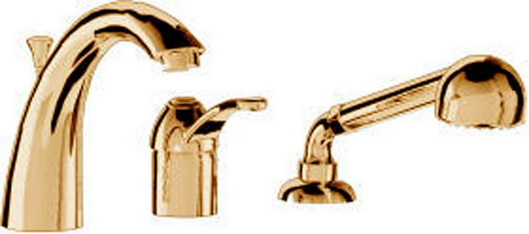 Смеситель для ванны встраиваемый в борт, на 3 отв., шланг, лейка в компл. (цв. золото) Miss ZZ
