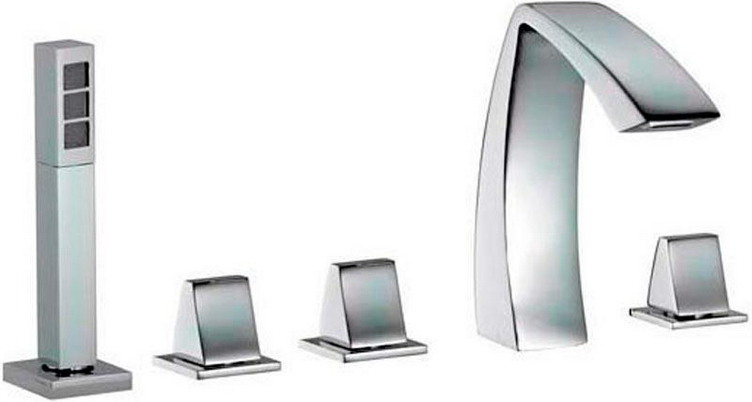 Смеситель для ванны, встраиваемый в борт на 5 отв., (излив, лейка, шланг, три ручки в компл.), (цв. хром), Arche ZZ