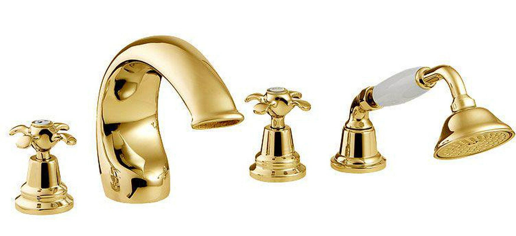 Смеситель для ванны, встраиваемый в борт ванны с душ. гарн. на 4 отв. (цв.золото) Nuova Retro ZZ