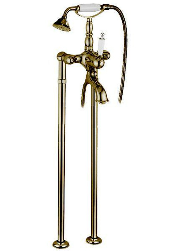 Смеситель для ванны, напольный, трубы 2шт., лейка, шланг, кронштейн в компл., (цв. бронза, ручка цв. белый), Canterbury ZZ
