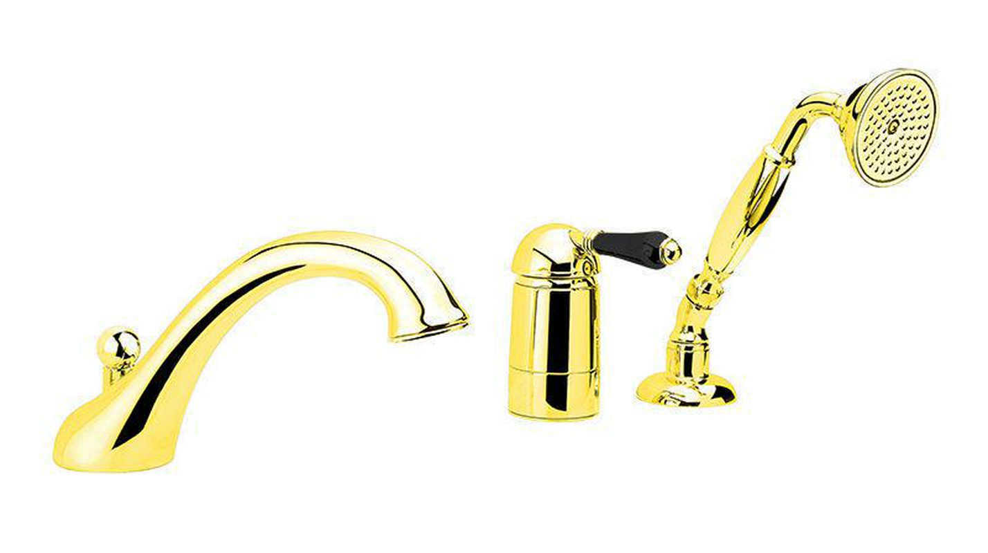Смеситель д/в, встраиваемый на 3 отв., лейка, шланг, кронштейн в компл., (цв.гальван.золото, ручка Cristallo), Classico ZZ