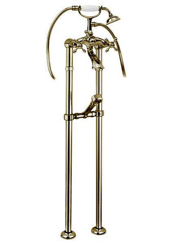 Смеситель для ванны, напольный, трубы 2шт., крепёж к сифону, лейка, шланг, кронштейн в компл., (цв. бронза), Chopin ZZ