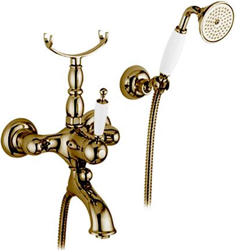 Смеситель для ванны, лейка, шланг, кронштейн в компл., (цв. бронза, ручка цв. белый), Canterbury ZZ