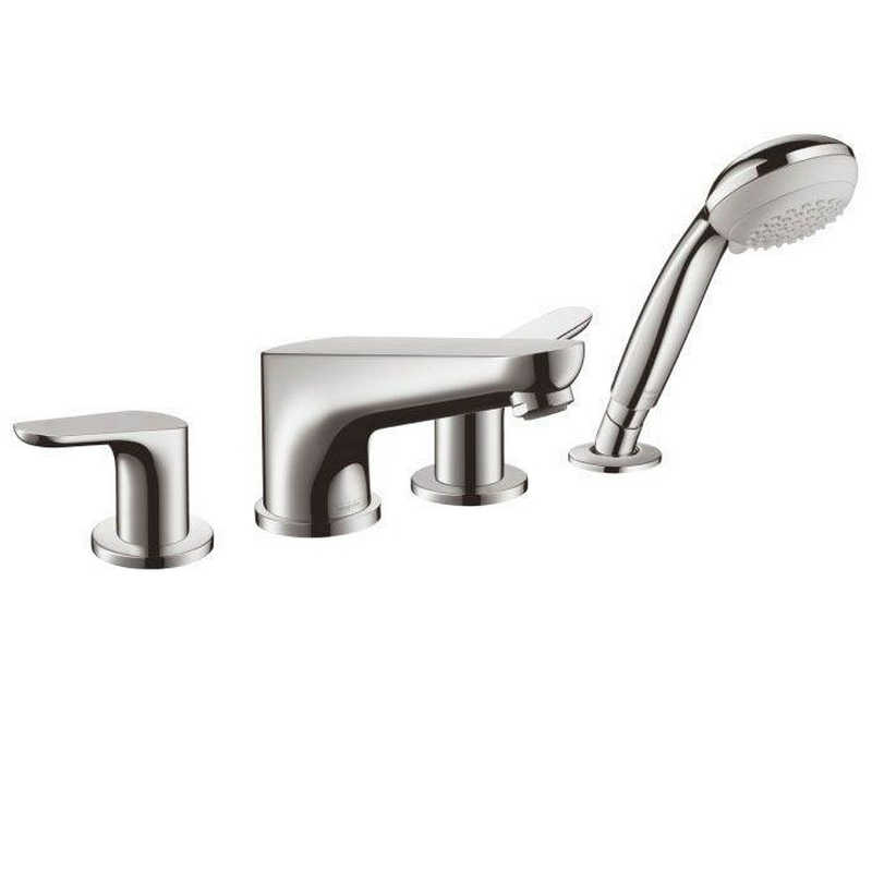Смеситель для ванны, встраиваемый в борт, на 4 отв., внешняя часть (БЕЗ внутр. части – арт.13244180), лейка в компл., (цв.хром), Focus XX
