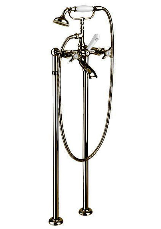 Смеситель для ванны, напольный, трубы 2шт., крепёж к сифону, лейка, шланг, кронштейн в компл., (цв. бронза), Princeton ZZ