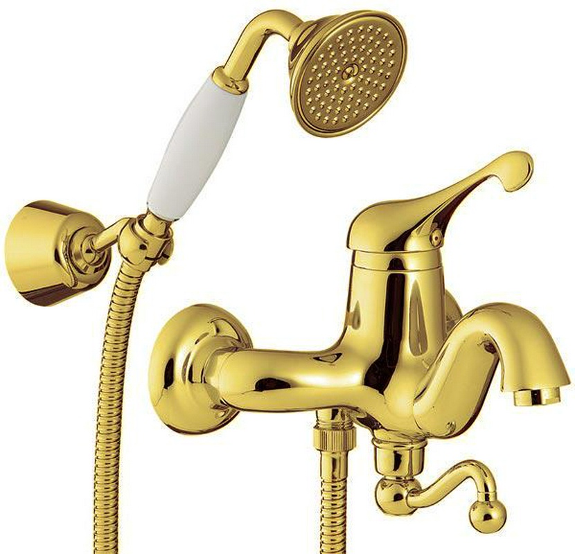 Смеситель для ванны в комплекте с шлангом, лейкой, кронштейном, (maniglia PL / рукоятка с пластик. вставкой белого цвета), (цв.золото) Piccadilly ZZ