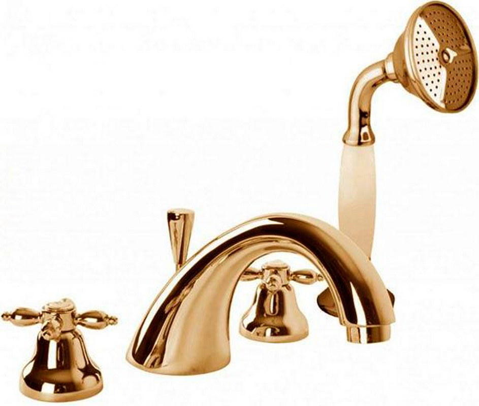 Смеситель для ванны, встраиваемый в борт, на 4 отв., лейка, шланг в компл., (цв. бронза), Golf ZZ