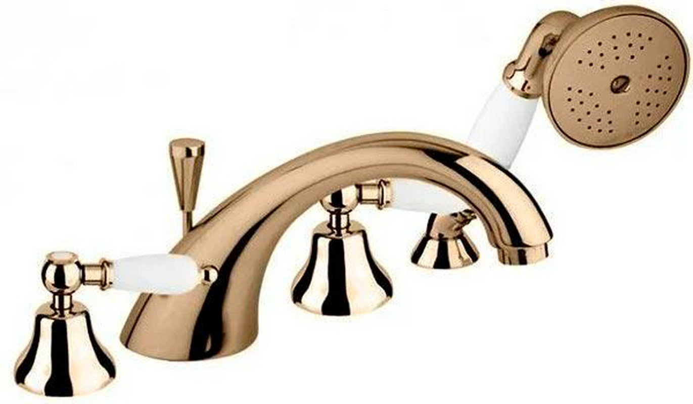 Смеситель для ванны, встраиваемый, на 4 отв., лейка, шланг в компл., (цв. бронза, ручка цв. белый), Canterbury ZZ