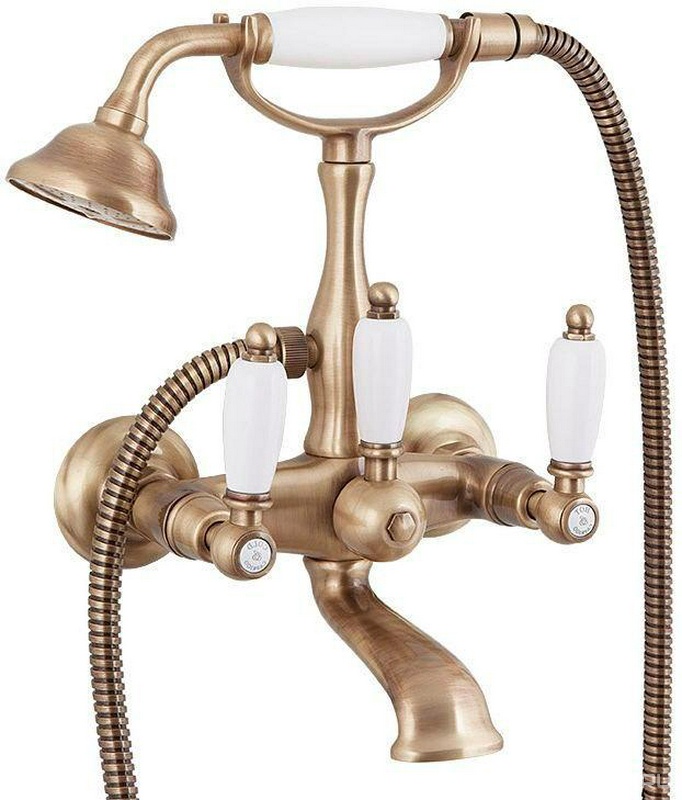 Смеситель для ванны, лейка, шланг, кронштейн в компл., (цв. бронза, ручка цв. белый), Canterbury ZZ