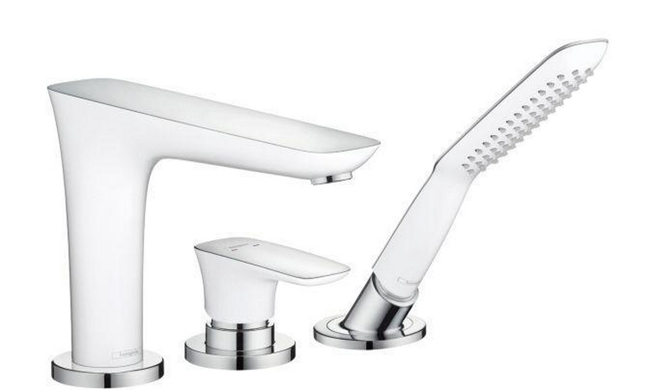 Смеситель для ванны встраиваемый на 3отв. (без скрытой части арт.13437180) в компл. шланг 1,25 м и ручной душ, (цв.белый/хром), PuraVida XX