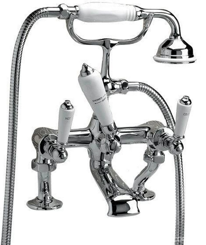 Смеситель для ванны с душ.гарнитуром, (установка на борт ванны на 2 отв. или на трубы из пола), (цв.хром, ручки цв.белый), Dandy ZZ