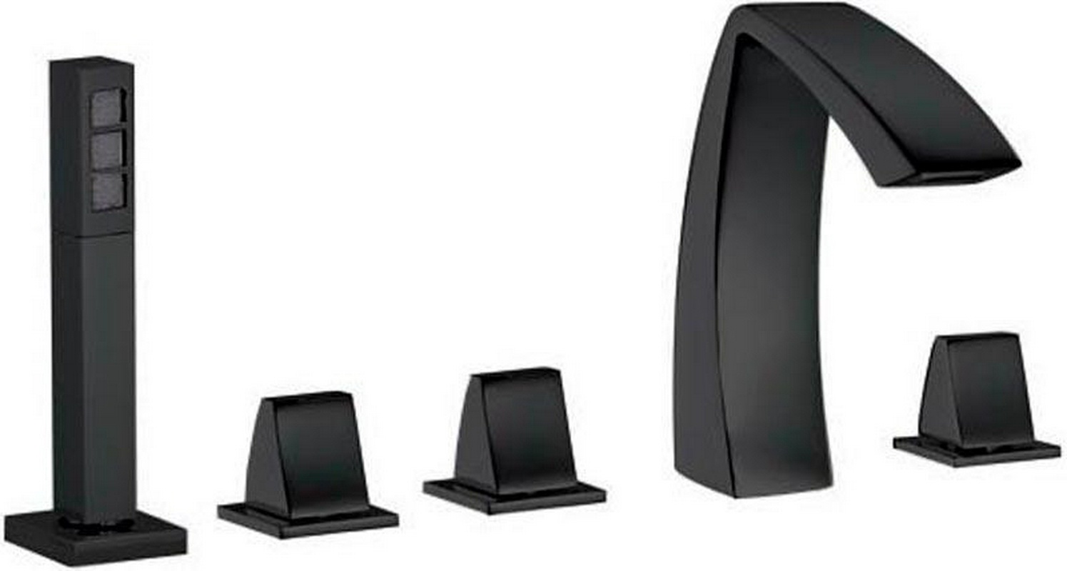 Смеситель для ванны, встраиваемый в борт на 5 отв., (излив, лейка, шланг, три ручки в компл.), (цв. Черный мат.), Arche ZZ