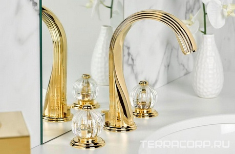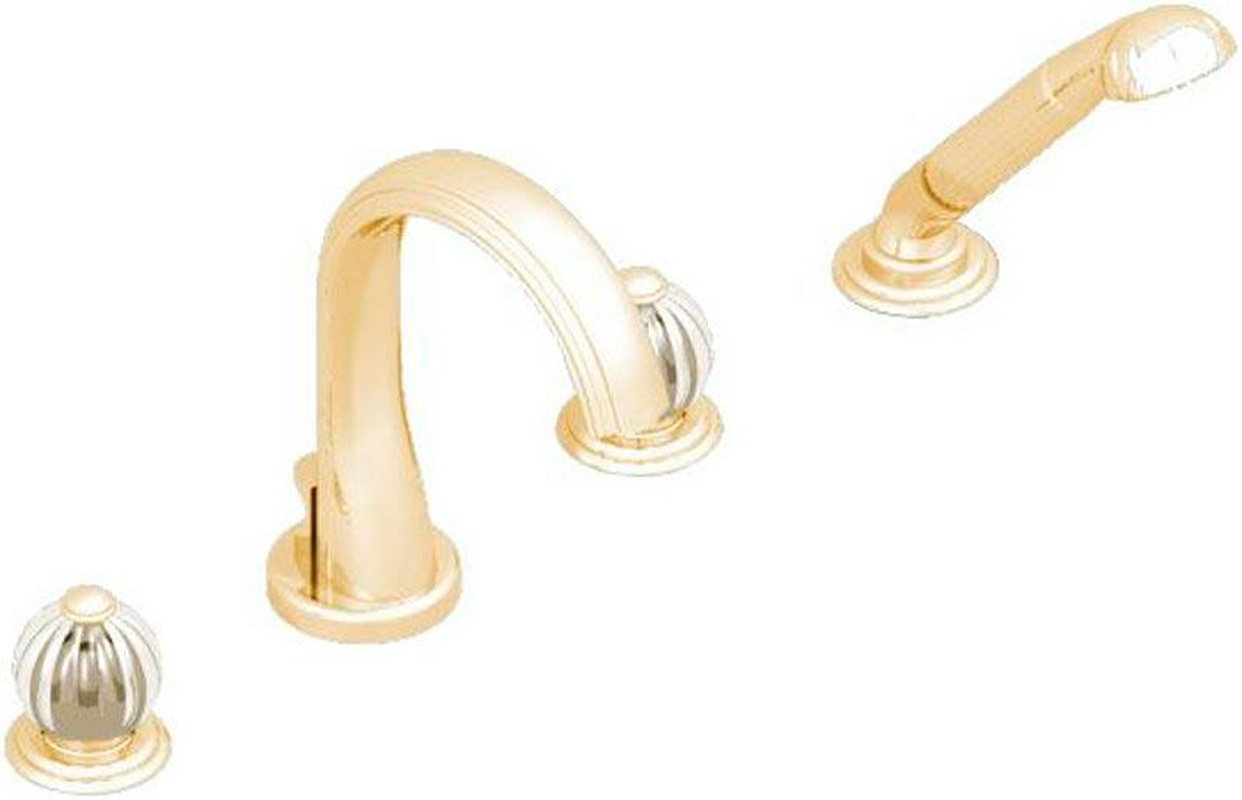 Смеситель для ванны, встраиваемый в борт на 4 отв., шланг, лейка в компл., (цв. золото (Dore)) Mandarine cristal clair ZZ