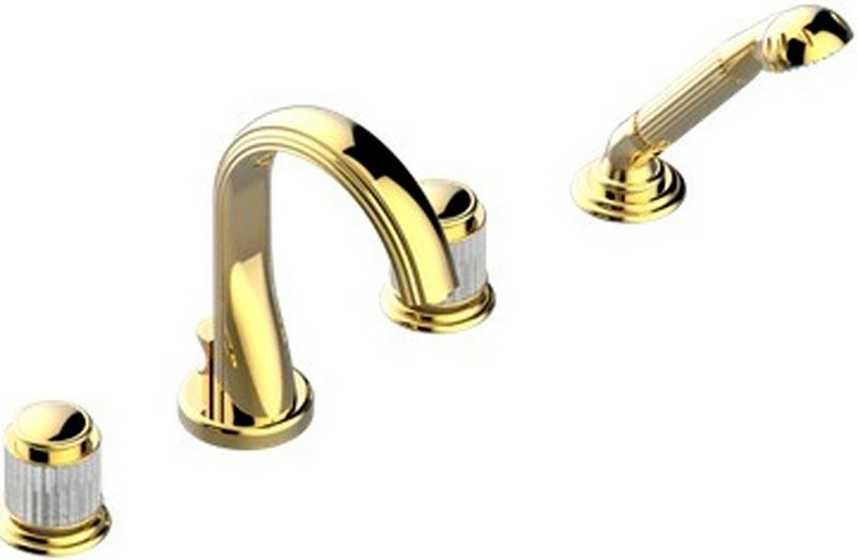 Смеситель для ванны, встраиваемый в борт на 4 отв., шланг, лейка в компл., (цв. золото (Dore)) Jaipur Aragonite ZZ