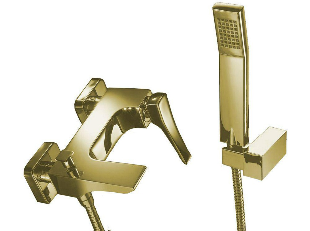 Смеситель для ванны, лейка, шланг, кронштейн в компл., (цв. золото), Skip XX