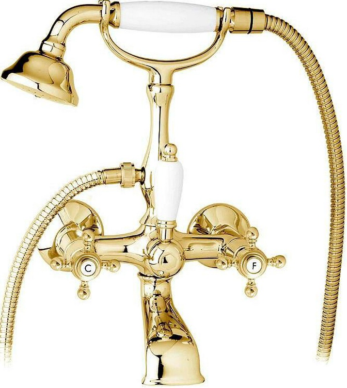 Смеситель для ванны, с душевым гарнитуром (лейка, шланг в компл.), (цв.гальван.золото, ручки 36), Impero ZZ