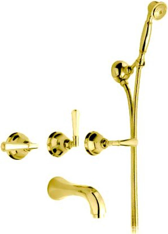 Смеситель для ванны, встраиваемый в стену, с душевым гарнитуром, (встраив.часть смес., излив, лейка, кронштейн, шланг в комп.), (цв. золото), Teide ZZ