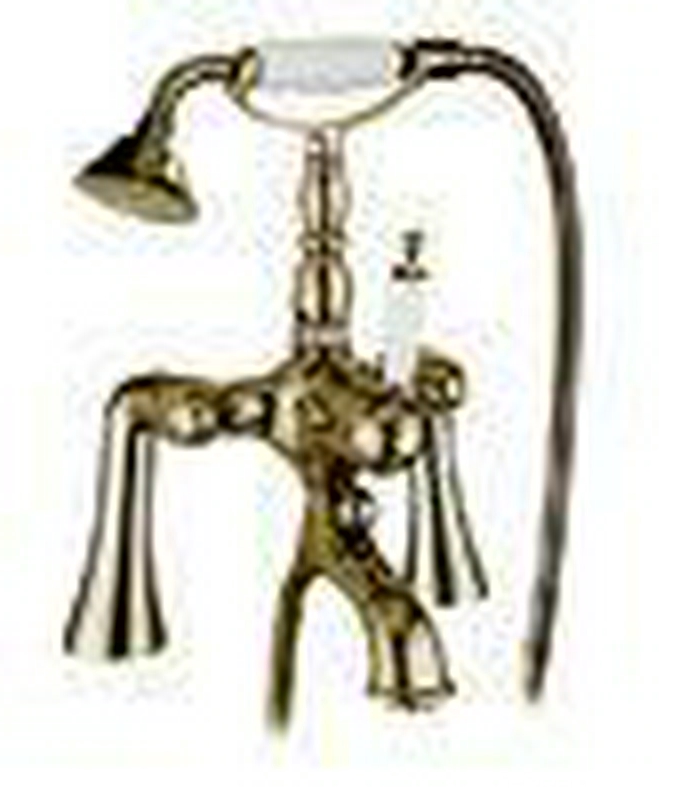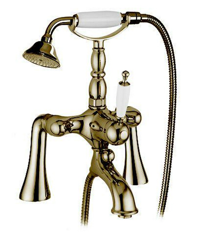 Смеситель для ванны,встр. в борт на 2 отв. с душевым гарнитуром, (цв. бронза, ручка цв. белый), Canterbury ZZ