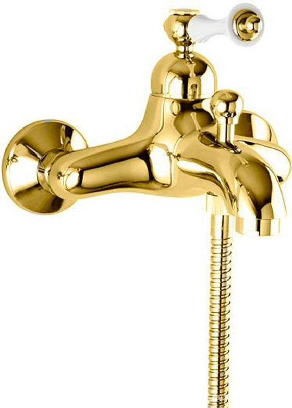 Смеситель для ванны, лейка, шланг, кронштейн в компл., (цв.золото 24k, ручка Cristallo), Nicolazzi ZZ