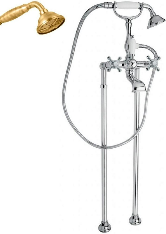 Смеситель для ванны, напольный, трубы 2шт., шланг, лейка в компл., (цв. бронза ), Golf ZZ