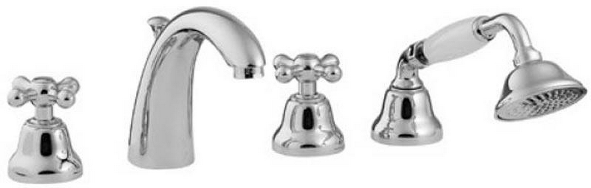 Смеситель для ванны, встраиваемый в борт ванны с душ. гарнитуром на 4 отв.,(цв.хром/золото), Romantica ZZ