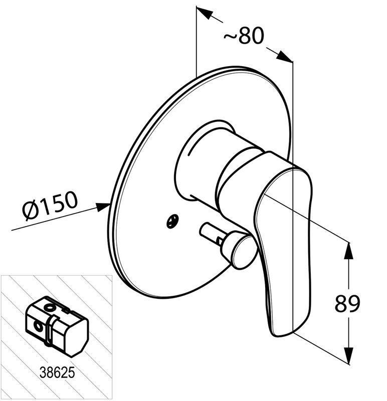 Смеситель встраиваемый для ванны/душа Tercio, однорычажный, БЕЗ внутр.части арт. 38 625, хром ХХ