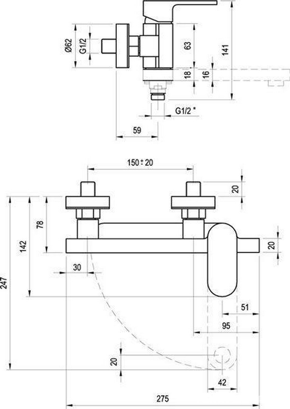 Смеситель для ванны Chrome CR 022.00/150 с поворотным изливом