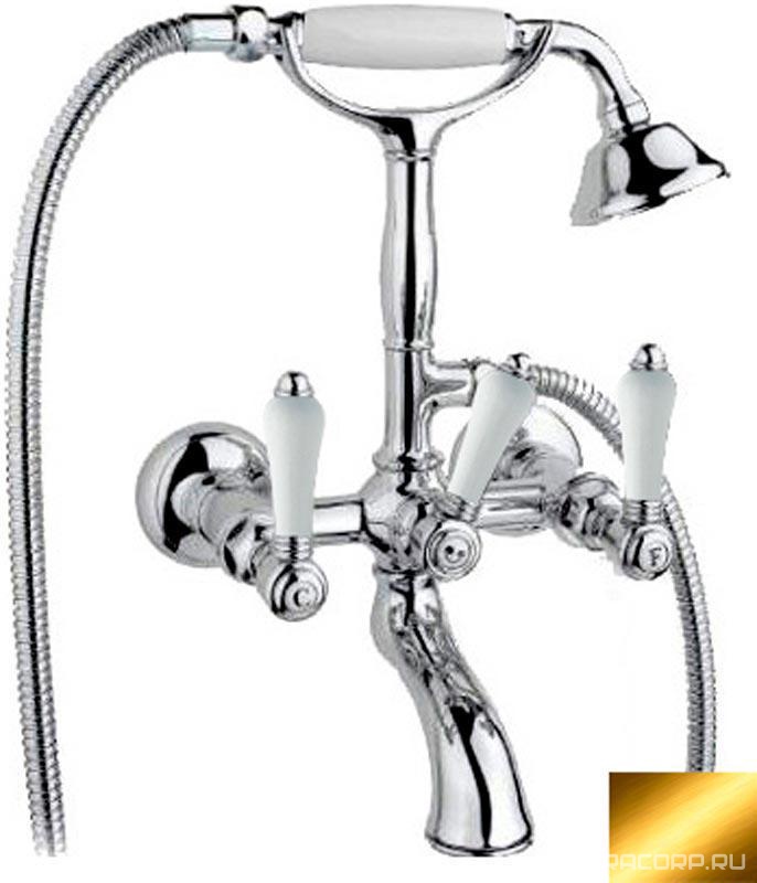 Смеситель для ванны с душевым гарнитуром, (цв.гальван.золото, ручки Half Dome), Nicolazzi ZZ