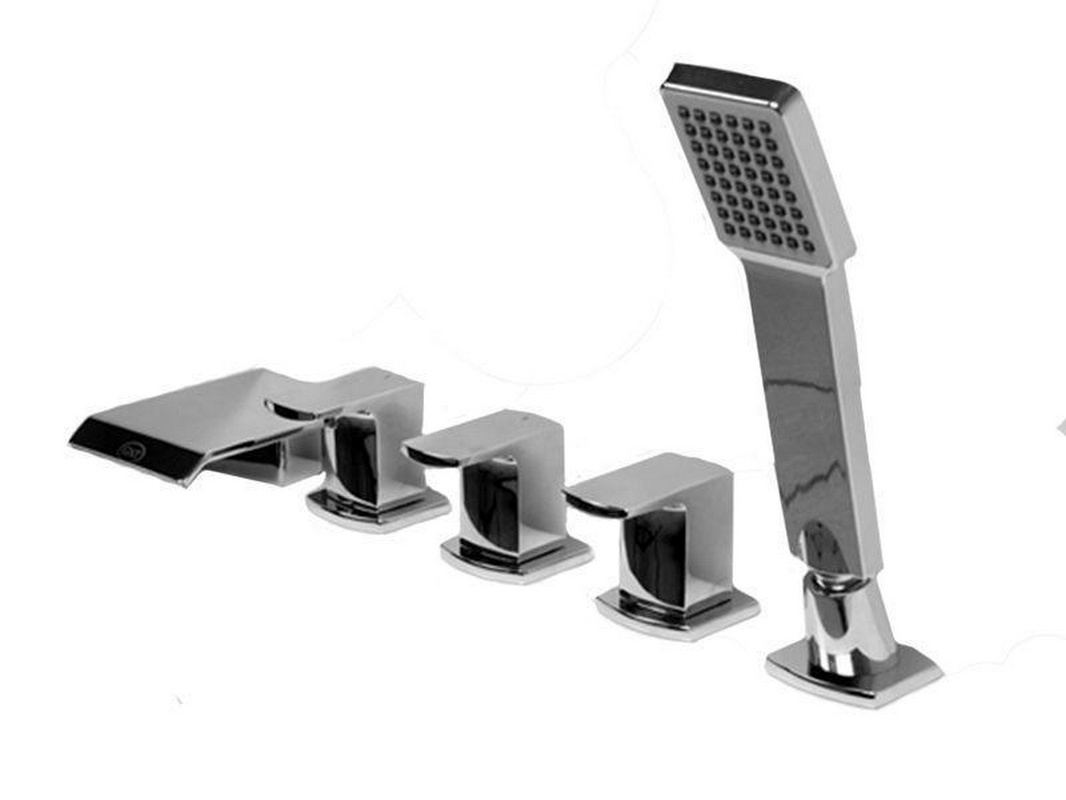 Смеситель для ванны, встраиваемый в борт ванны, с душ. гарнитуром на 4 отверстия, (цв.хром), Torrens -72 ZZ