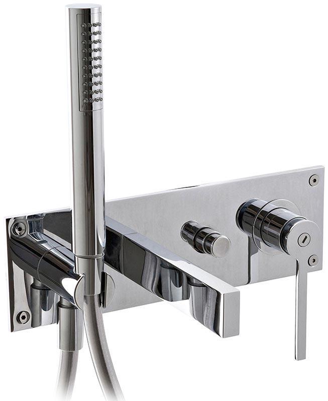 Смеситель для ванны, встраиваемый в стену, шланг, лейка, внутренняя часть в компл., (длинный рычаг), (цв.хром), Time ZZ